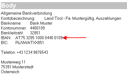 Die deutsche IBAN ist z.B. nach folgendem Muster aufgebaut:
