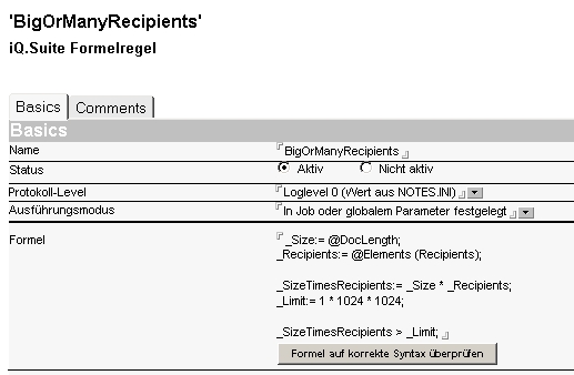 Wählen Sie als Typ Formel aus und kopieren Sie die Formel aus der „iQ.Suite Formel Regel“ in das Formelfenster des Agenten.