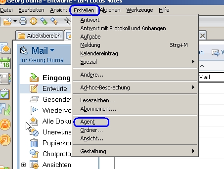 Legen Sie eine Mail, die Sie mit der Regel überprüfen wollen in Ihre Maildatei (oder in eine Test-Maildatenbank) und erstellen Sie einen Agenten.