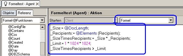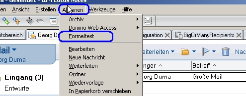 Wenn die Formel und der Agent abgespeichert wurden, kann man im IBM Domino Client die zu kontrollierende Mail markieren und über Aktionen – Agentennamen die Regel testen.