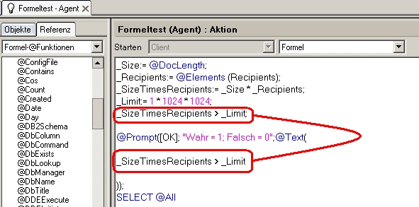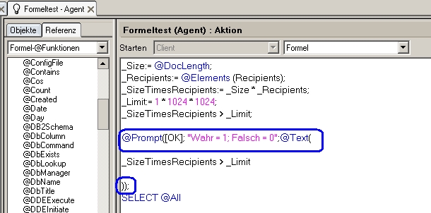Die eigentliche Abfrage (größer, kleiner, gleich, ungleich) muss in die Ausgabe (@Prompt) eingefügt werden.
