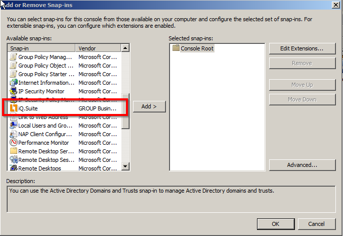 Nun finden Sie in der Liste der Snap-Ins auch die iQ.Suite Konsole.