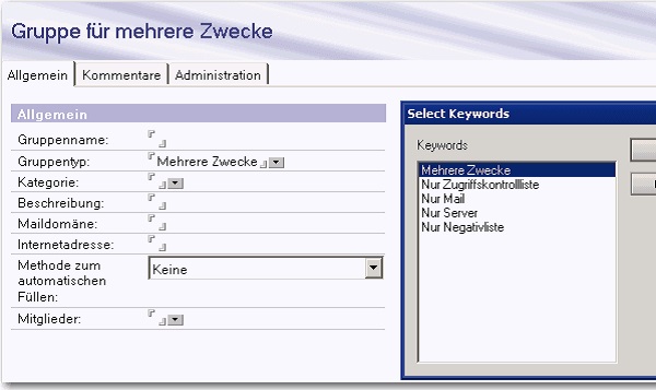 In einigen Konfigurationsdokumenten der iQ.Suite wie z.B. Regeln und Lizenzkonfigurationen können Benutzergruppen ausgewählt werden, die zuvor im Domino Directory angelegt wurden. Beachten Sie dabei, dass die iQ.Suite nur Benutzergruppen vom Typ ‚Nur Mail‘ oder ‚Mehrere Zwecke‘ verwenden kann: