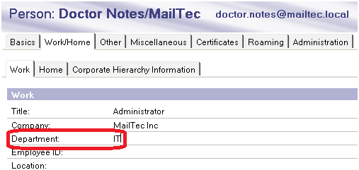 Wenn das Feld Department im Directory geändert wird, zieht diese Änderung nicht sofort in der Regel, da die Antwort auf die Anfrage von Domino im Cache gespeichert wird.