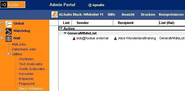 Diese Whiteliste bedingt eine regelmäßige manuelle Pflege durch den Administrator. Hier kann schnell und unkompliziert die Domäne eines neuen Kunden hinzugefügt werden. Solange dies nicht mehrfach täglich erfolgen muss, ist dieser Weg für den Administrator durchaus realisierbar. Wenn sich die Einträge häufen oder die Empfänger eine E-Mail-Adresse in einer Domäne haben, die nicht pauschal als „gut“ definiert werden kann (z. B. max.mustermann@yahoo.com), bietet sich die Einrichtung des automatischen Whitelistings an. Die iQ.Suite bietet dies über einen Wall-Job an, der einmal eingerichtet wird und ab dann seinen Dienst tut.