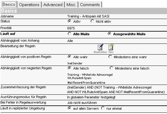 Der Listeneintrag als solcher ist noch nicht ausreichend. Wenn eine Liste in der Black-/Whitelist-DB als Whiteliste eingesetzt werden soll, muss sie im nächsten Schritt in eine Mail-Black-/Whitelistregel eingepflegt werden. In der mitgelieferten Regel „WLRuleAntiSpam“ ist dies bereits geschehen. Diese Regel muss nun im Anti-Spam-Job in die Abhängigkeit von negierten Regeln aufgenommen werden. Neben der Adress-Whitelist-Regel und der Formel-Regel „MailResentFromQuarantine“ verhindert nun die Regel „WLRuleAntiSpam“, dass eine Spam-Prüfung für bekannte, „gute“ Sender stattfindet. Vergessen Sie nicht, die Regeln mit „Alle falsch“ zu verknüpfen!