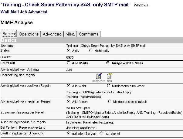 Im Beispiel wollen wir den Spam-Prüfjob nur für E-Mails laufen lassen, die aus dem Internet kommen.