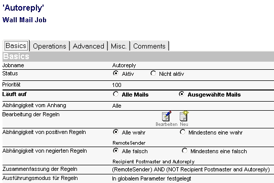Tragen Sie unter dem Reiter „Misc“ des jeweiligen Jobs bei „Memo von“ eine dedizierte Adresse ein, für die keine Bestätigungsmail geschickt werden soll: