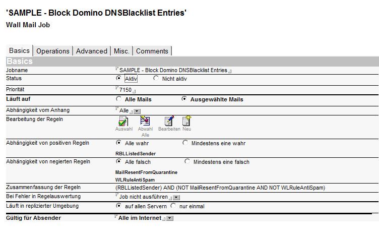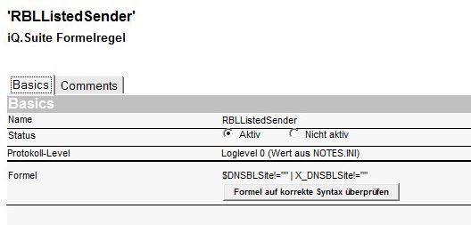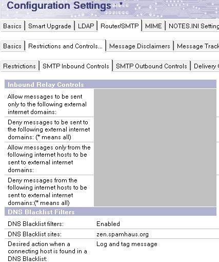 Konfigurieren Sie die DNSBL-Abfrage am Dominoserver im jeweiligen Konfigurationsdokument unter: