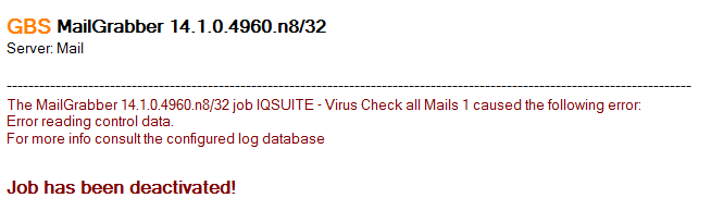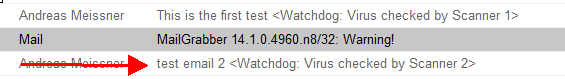 Solange der Hauptvirenscanner korrekt läuft, werden die E-Mails von diesem überprüft und der zweite Job wird nicht ausgeführt, so dass der zweite (Backup) Virenscanner inaktiv ist.