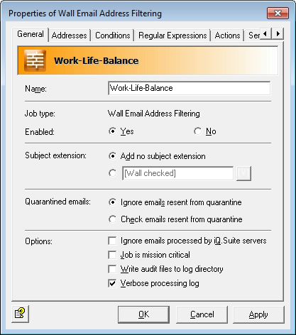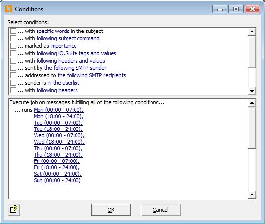Damit ausschließlich E-Mails außerhalb der regulären Geschäftszeiten von diesem Job erfasst werden, konfigurieren Sie dies unter folgenden Bedingungen: