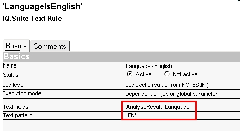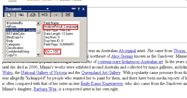 Ergebnis des Jobs „DEFAULT – Language Identification“ – Feld AnalyseResult_Language :“EN=100″