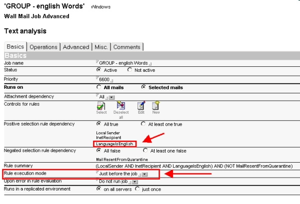 Die folgenden Jobs sollten laufen, wenn das Feld existiert und eine Sprachinformation enthält (hier wird mit einer Wortliste – deutsche Wortliste bei deutschem Text, englische Wortliste bei englischem Text) die E-Mail überprüft.