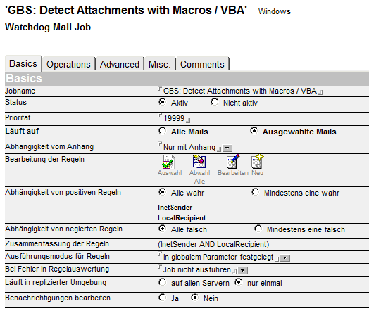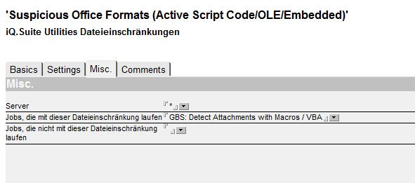 Using iQ.Suite Convert, documents containing macros are converted to a PDF file and can then be delivered to the user safely. In the required iQ.Suite Convert mailjob, the same fingerprints are selected as previously in the file restriction document.