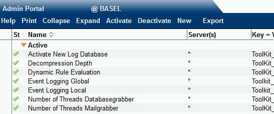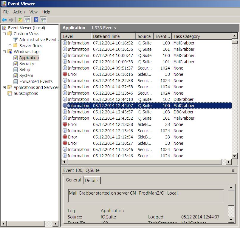 The following global parameters must be set in iQ.Suite Domino for protocol entries to be recorded in the Windows Event Log: