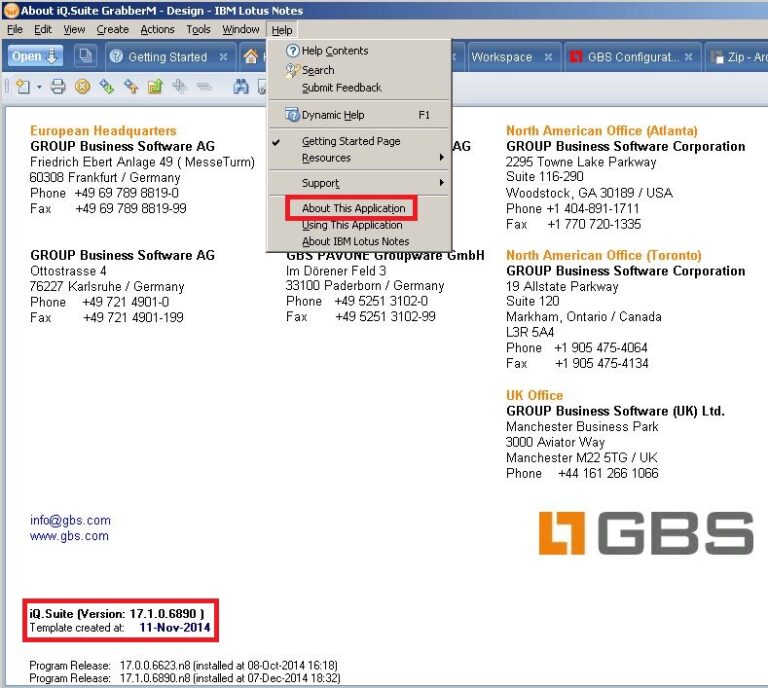 Notes Client displays the current version of iQ.Suite as well as the complete installation.